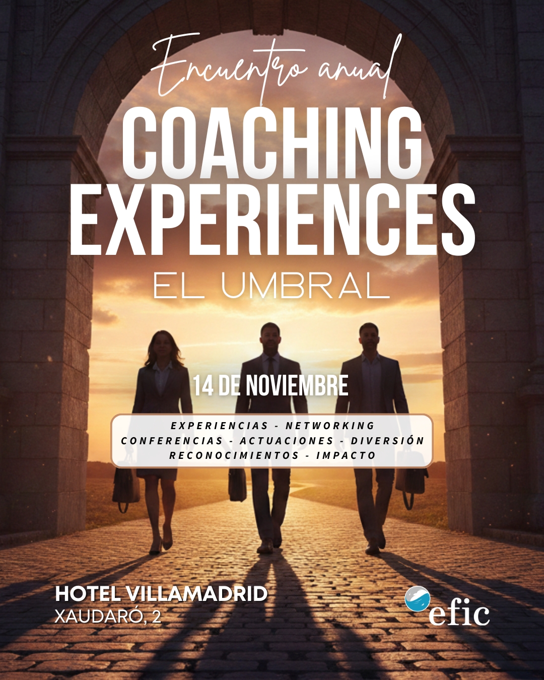 Hotel Villamadrid Calle Xaudaró, 2, Fuencarral-El Pardo, MadridCoaching Experiences – El Umbral 14 de noviembre de 2026 – Madrid ¡Marca en tu calendario el 14 de noviembre de 2026 en Madrid! ¡Prepárate para regresar al UMBRAL en el evento anual presencial de EFIC ALUMNI! Te invitamos a vivir una experiencia transformadora donde la esencia del Coaching Profesional Certificado [...]