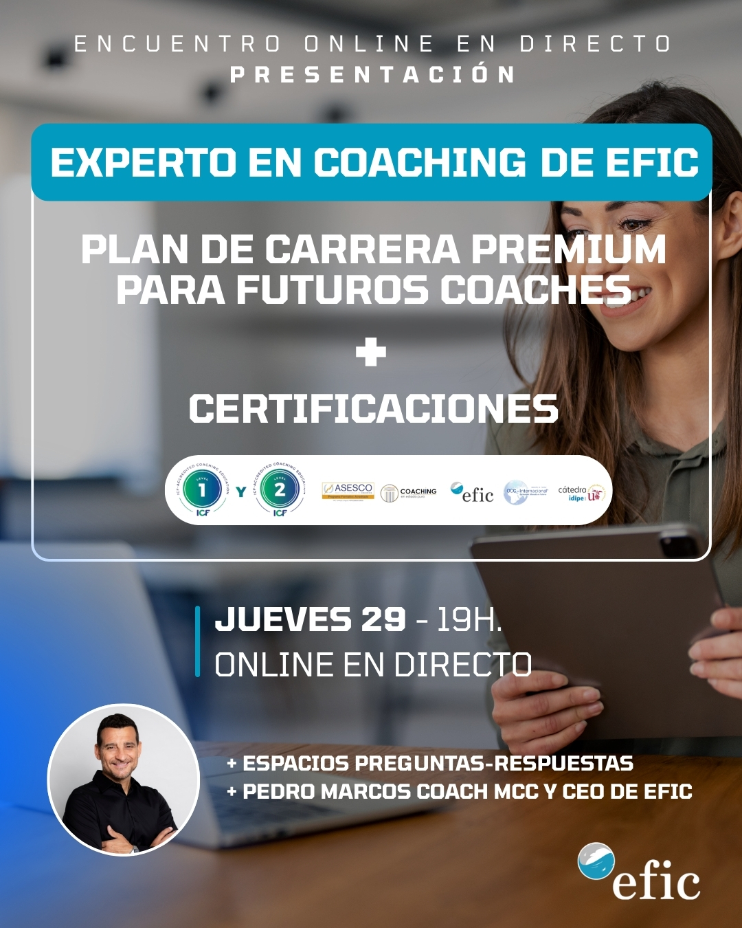 Descubre el Plan de Carrera Premium y las Certificaciones del Curso Experto en Coaching 🗓️ 29 de enero 🕒 19:00h – 20:30h (hora España) 💻 Online en Directo - Inscripción gratuita Cómo diseñar y consolidar tu carrera como Coach Profesional Certificado (con Plan de Carrera Premium [...]